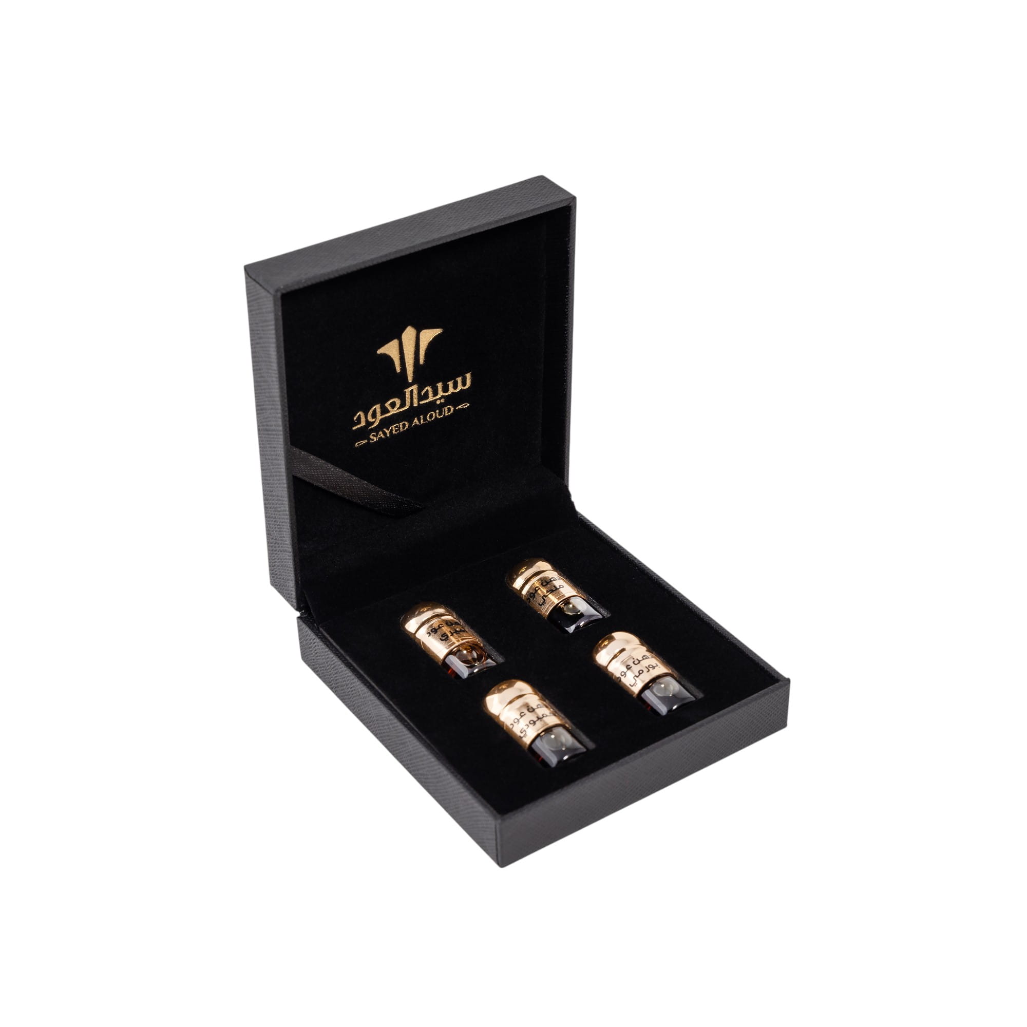 بوكس نانو فاخر يضم تشكيلة أنيقة من أدهان العود النقية في قارورات صغيرة (نانو)، مثالي للتجربة أو الإهداء، ويأتي داخل علبة خشبية راقية.